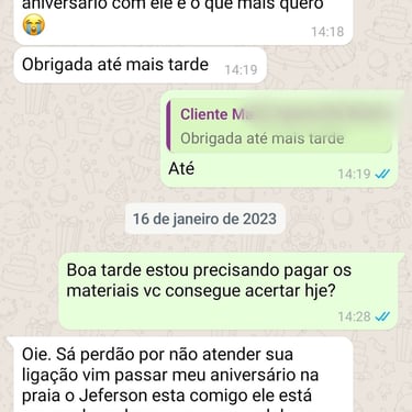ACOMPANHE ABAIXO ALGUMAS DE MINHAS CONVERSAS COM CLIENTES, E COMPROVE A EFICIÊNCIA DE MEUS TRABALHOS: